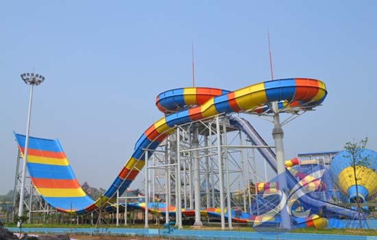 水滑梯特別適合喜歡驚險、刺激的勇于挑戰的人群。 游客乘坐專用皮筏,從13米高平臺入口處下滑,經過一段螺旋引道后,如同太空飛船般俯沖而下,越過特別低點后帶著巨大的慣性,沖向對面的爬坡滑板,并迅速爬升至特別高點,體驗“沖天”的快感;驚魂甫定時,又在自身重力作用下快速回落,進入回收滑槽內,并再次經過半圓的回旋滑入落水池,體驗“回旋”的暈眩。